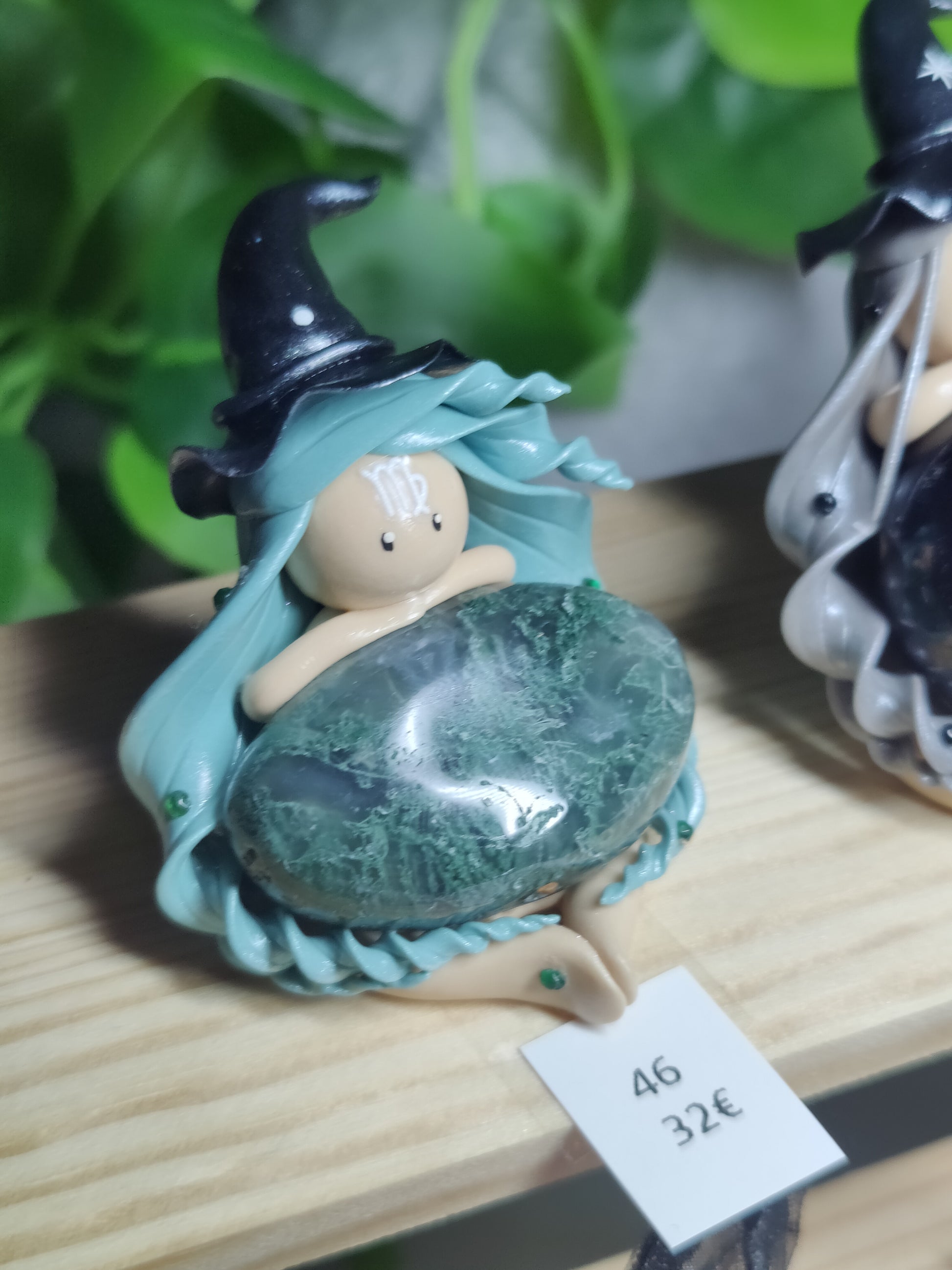 46: 32€ Sorcière du signe vierge et son agate mousse. Une linotte amoureuse de la nature