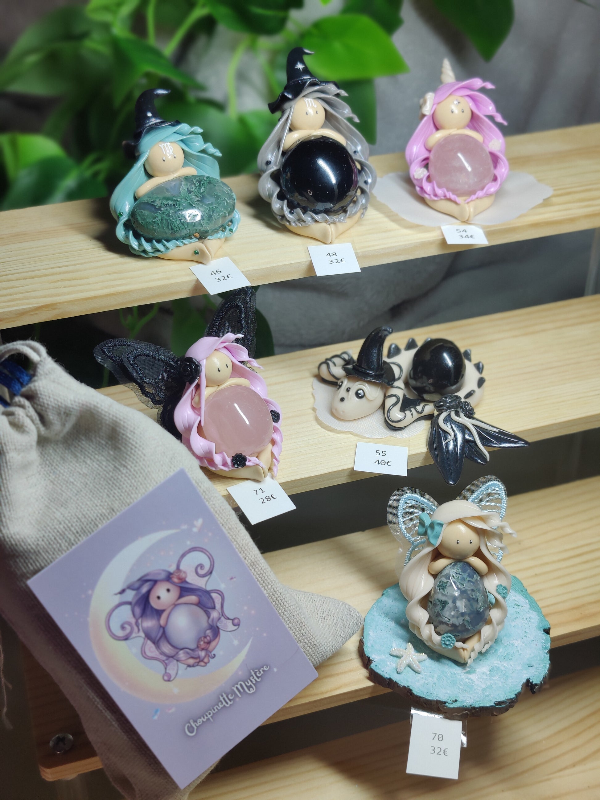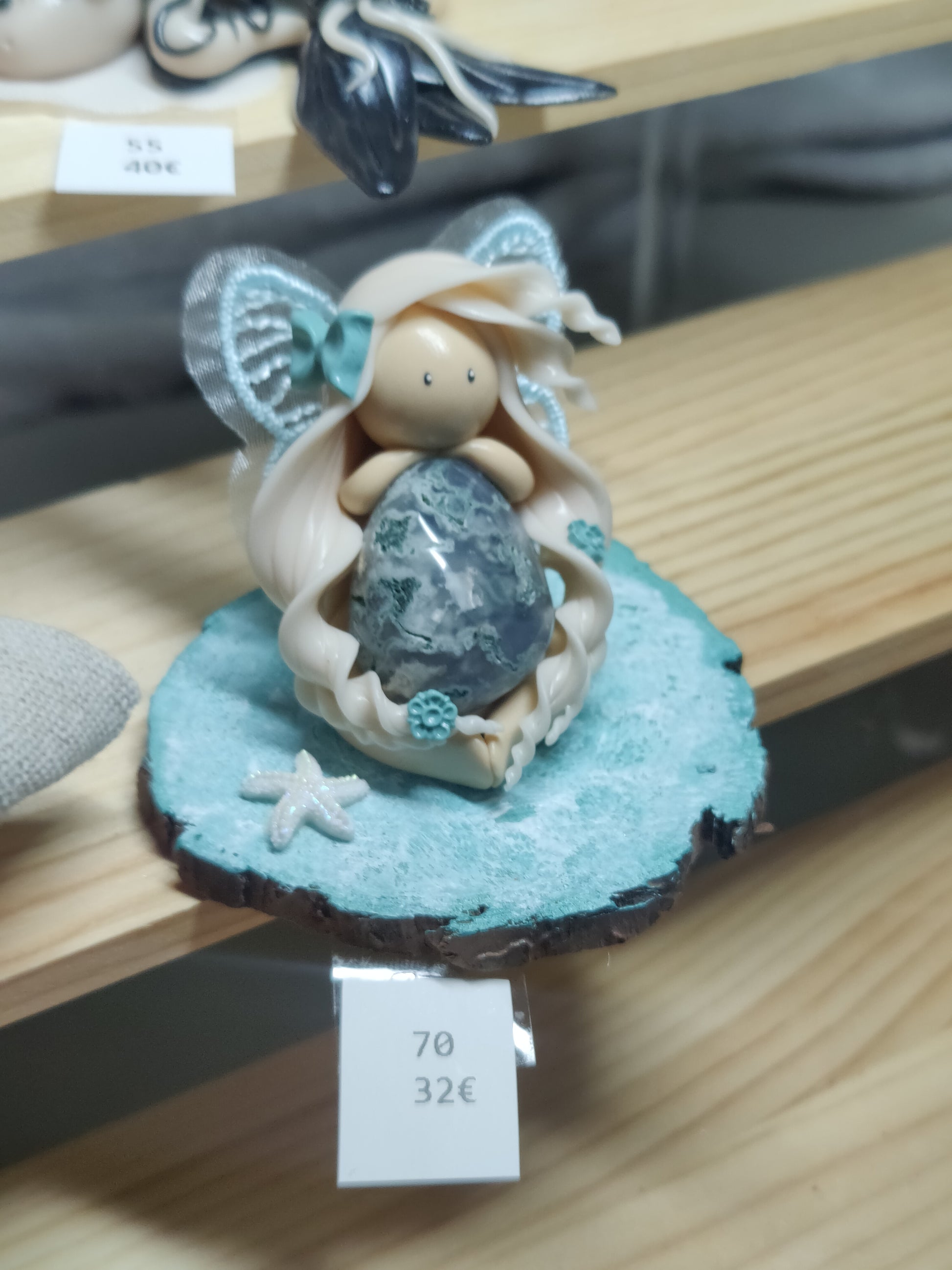 70 : 32€ : Fée des océans et son agate mousse. Une linotte douce et apaisante.