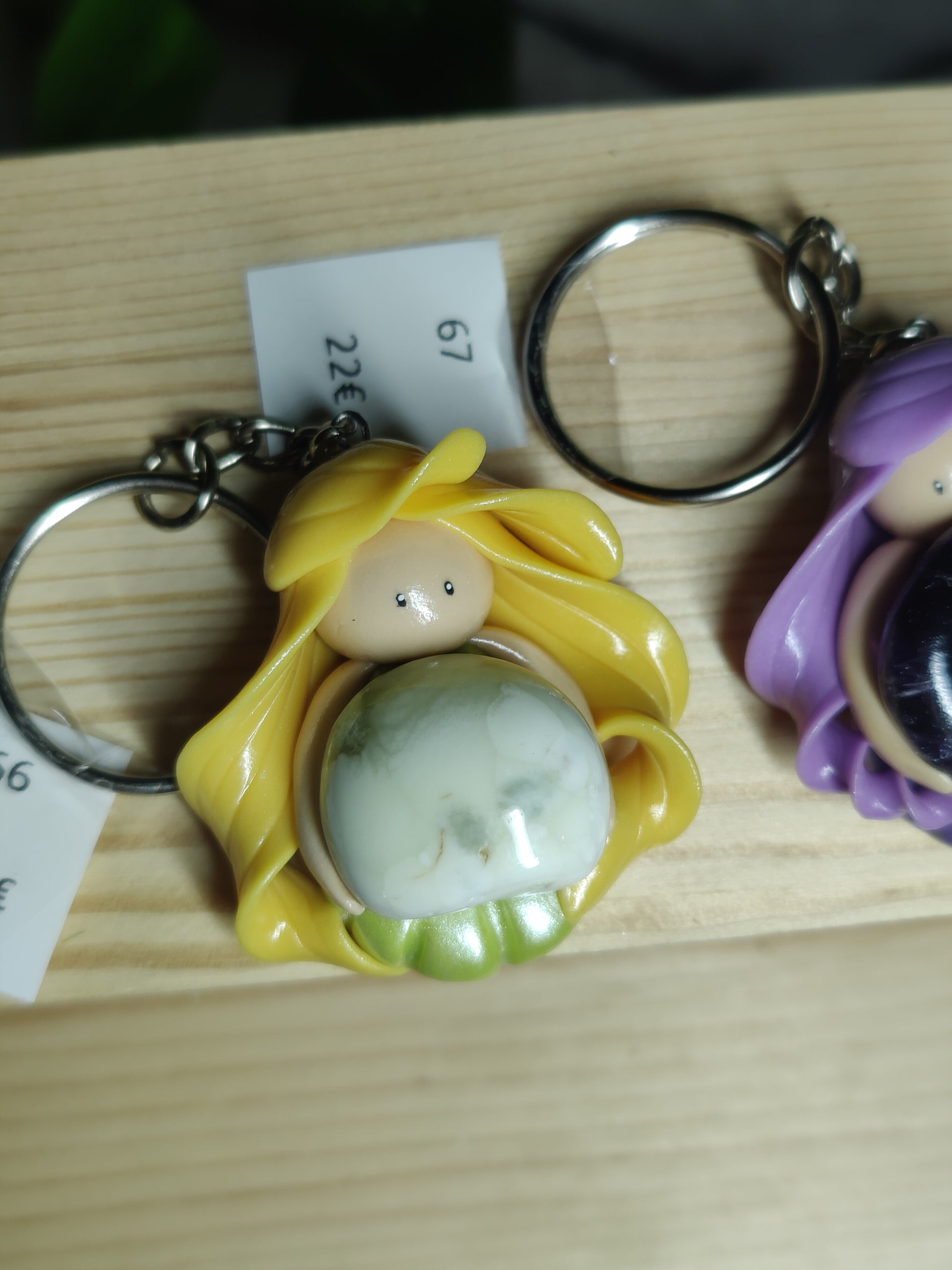 66 : Porte clef mini Linotte et jade jaune - Une petite linotte pleine de douceur