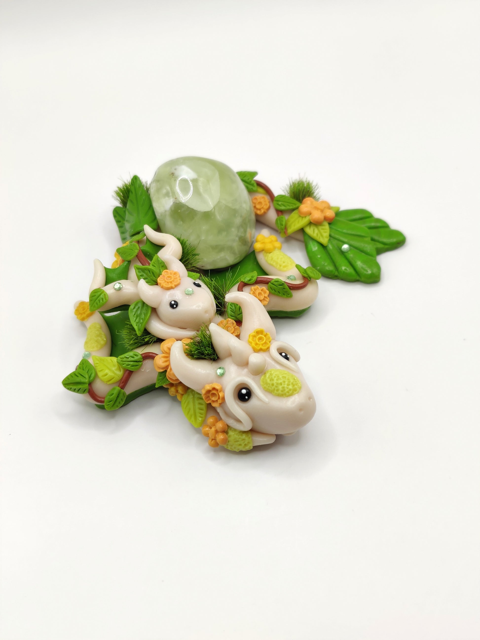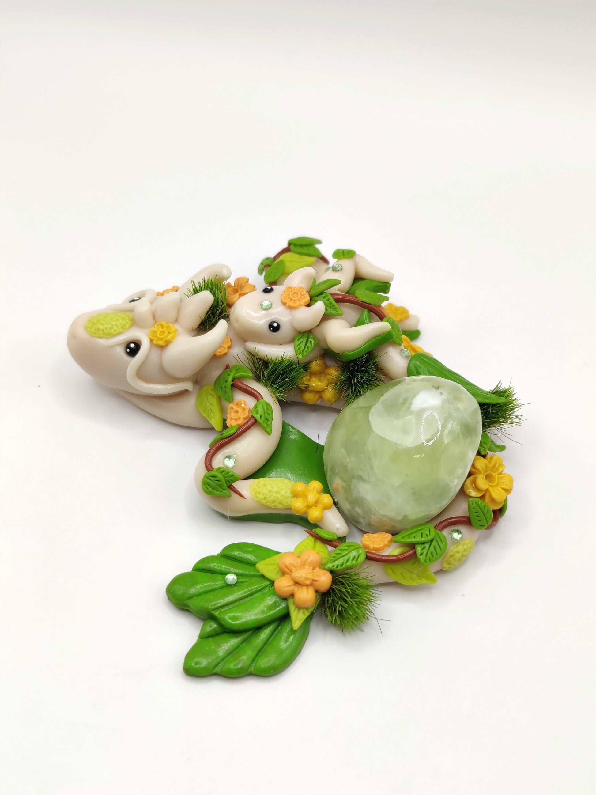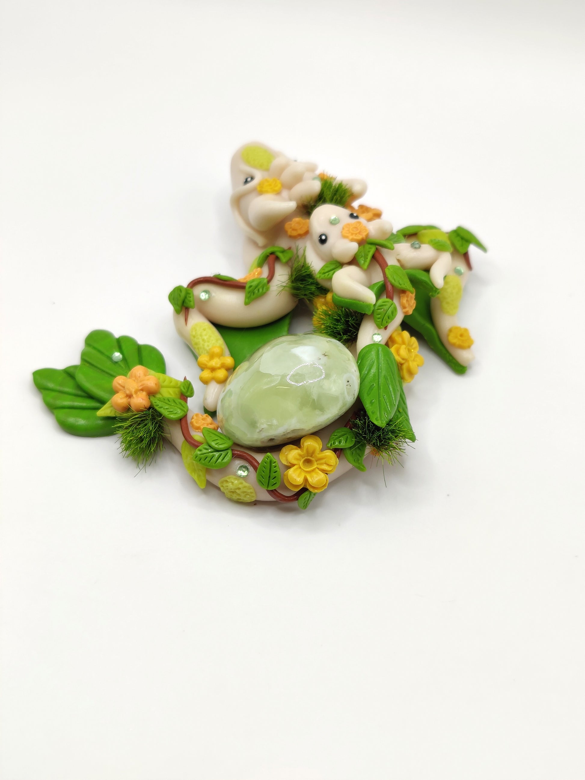 Jolie maman dragon des fleurs et son bébé, avec sa belle jade jaune.
