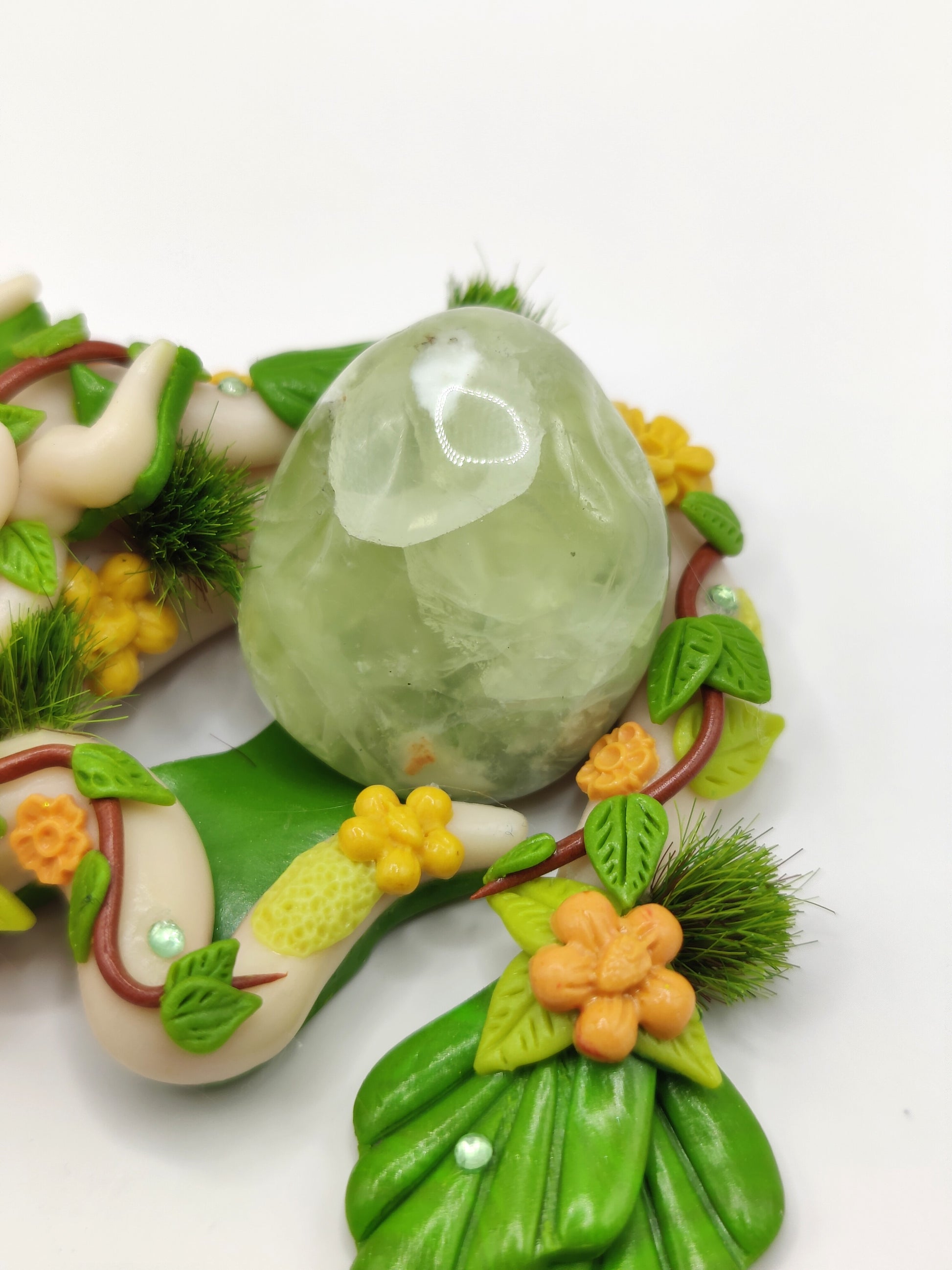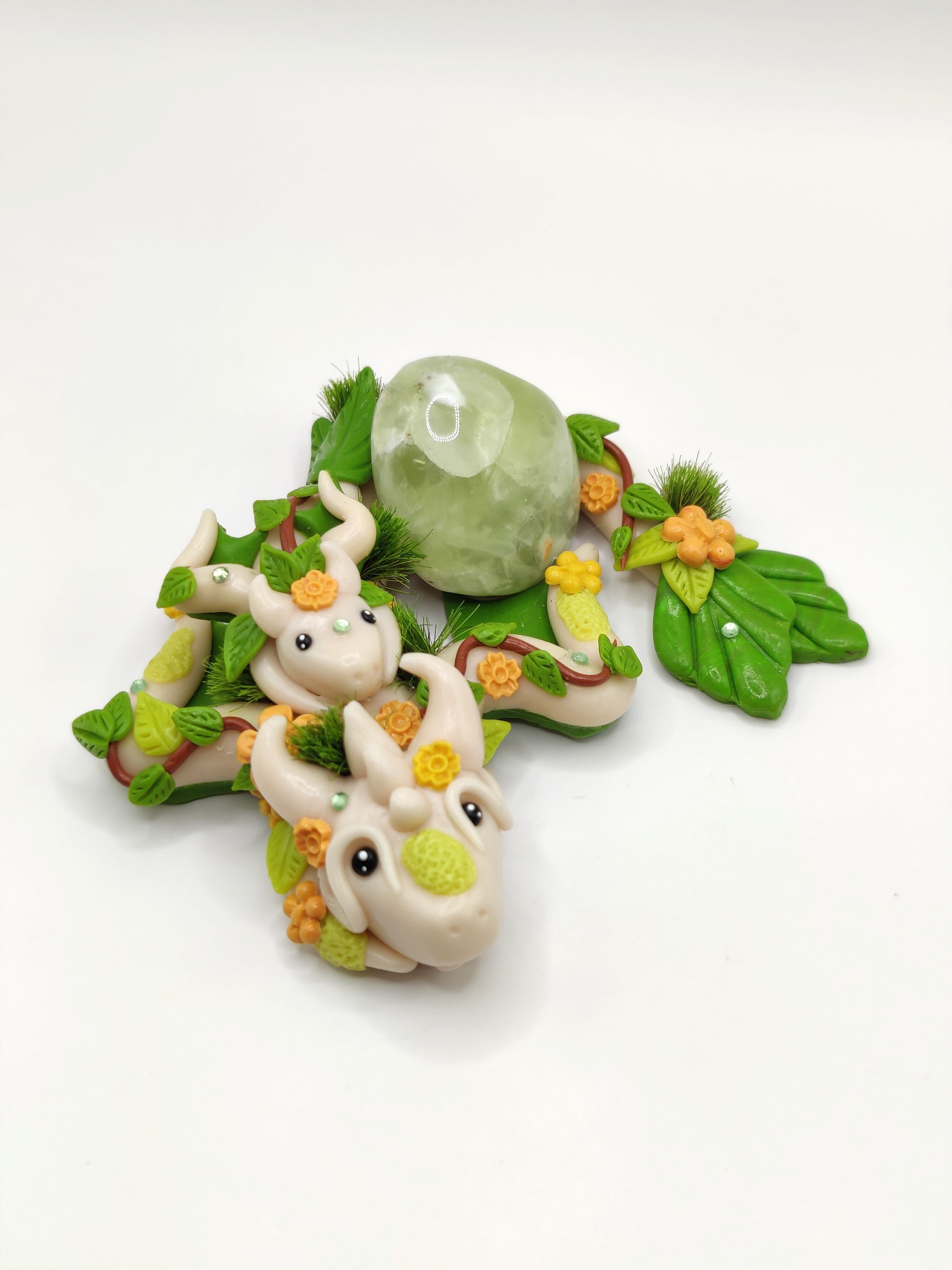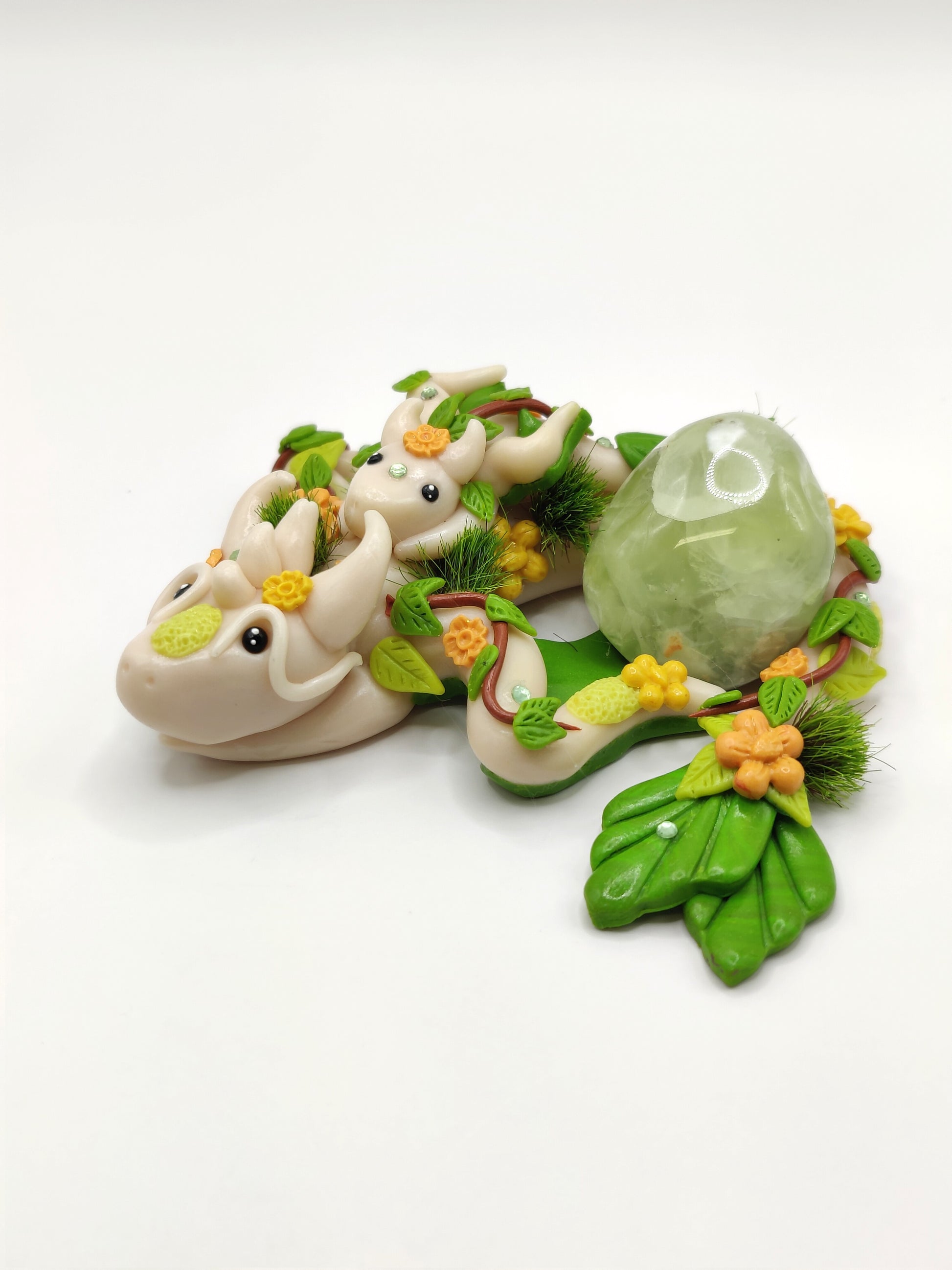 Jolie maman dragon des fleurs et son bébé, avec sa belle jade jaune.