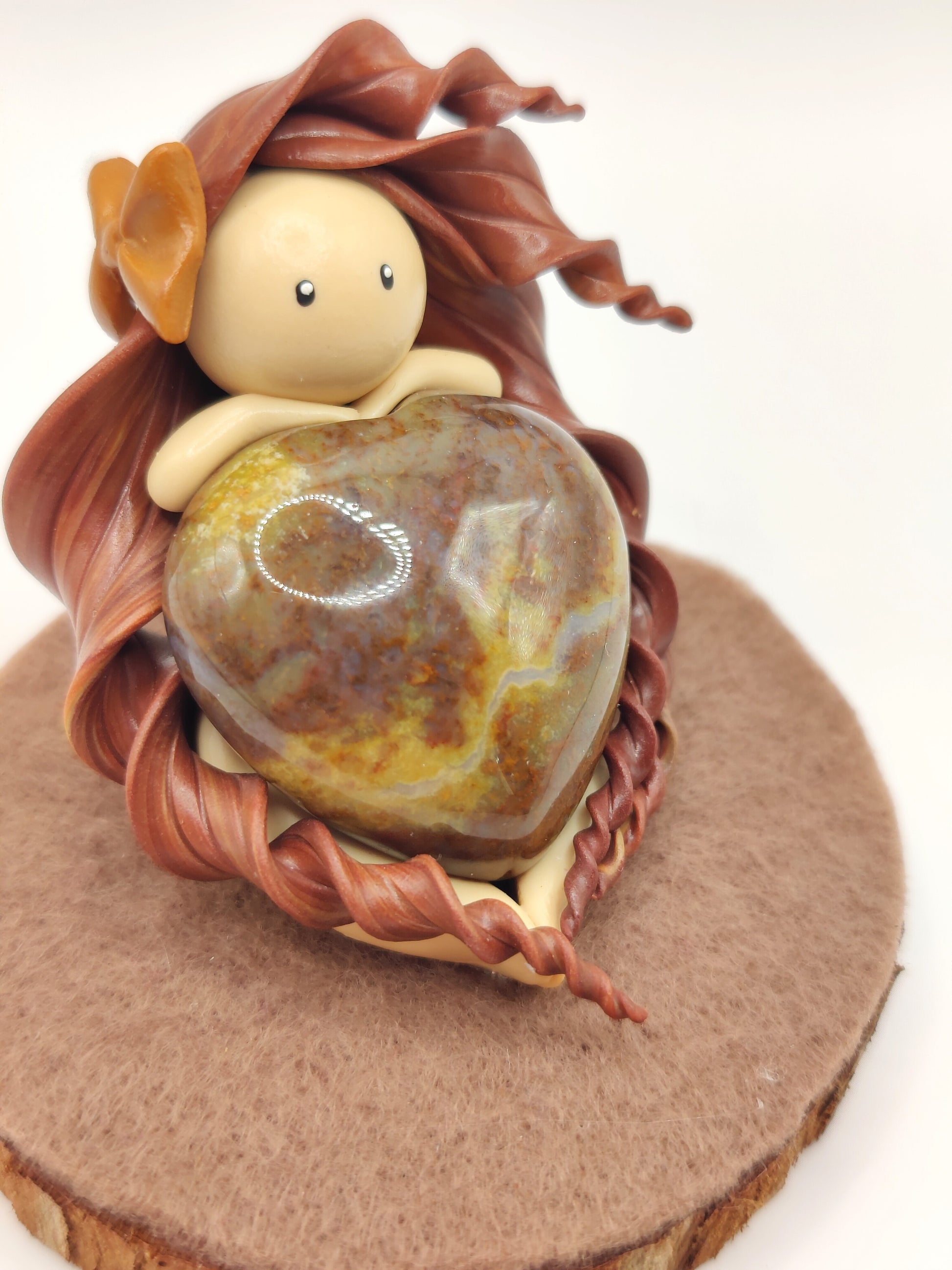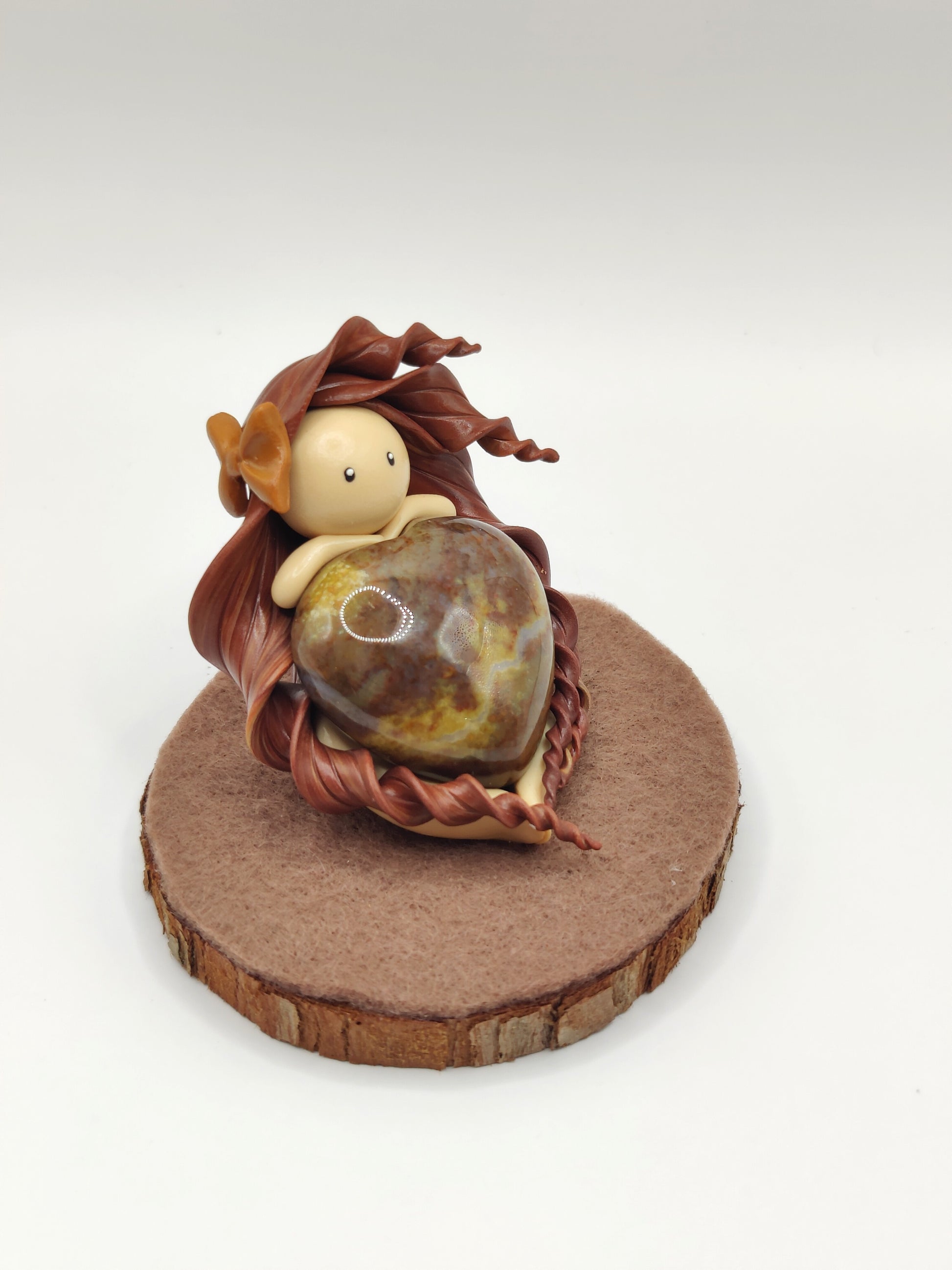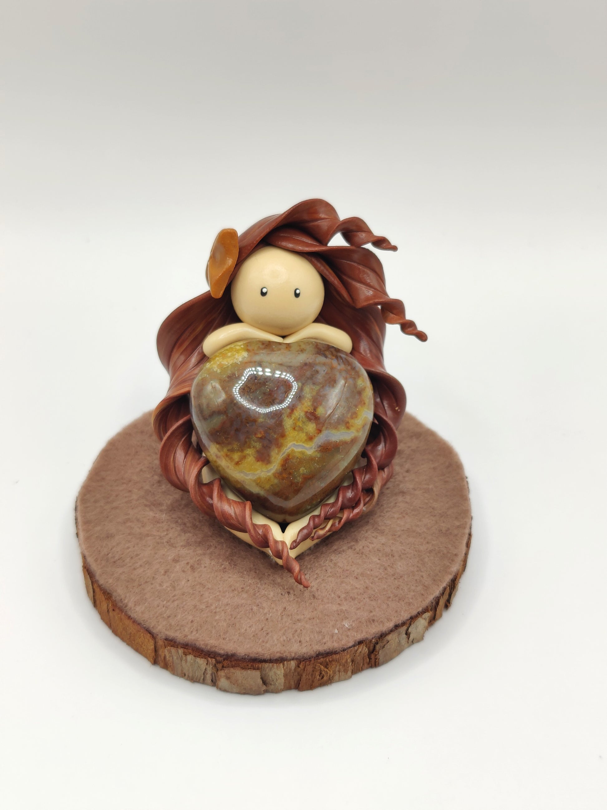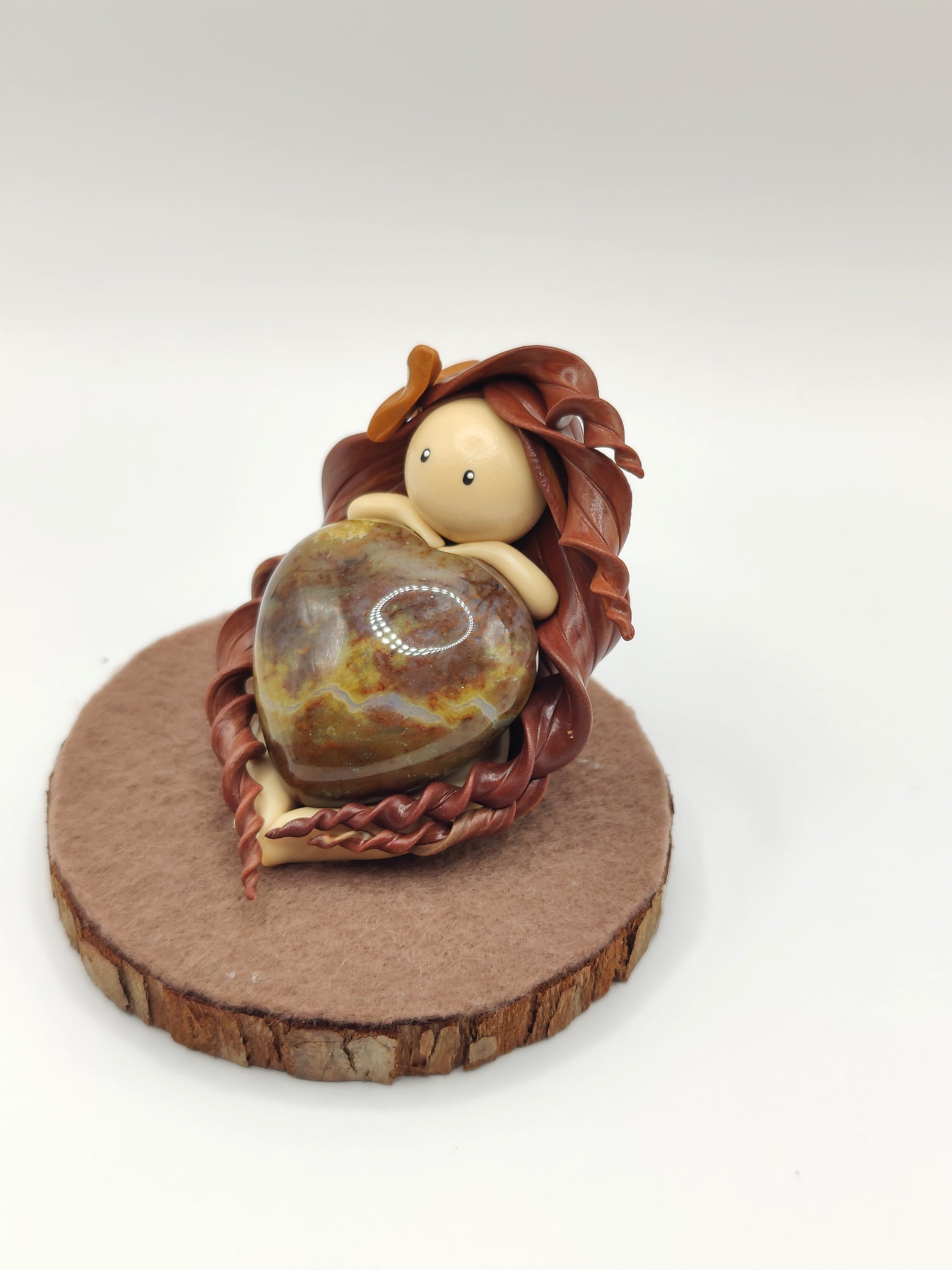 Jolie nymphe de force et son sublime jaspe breschia en forme de cœur.