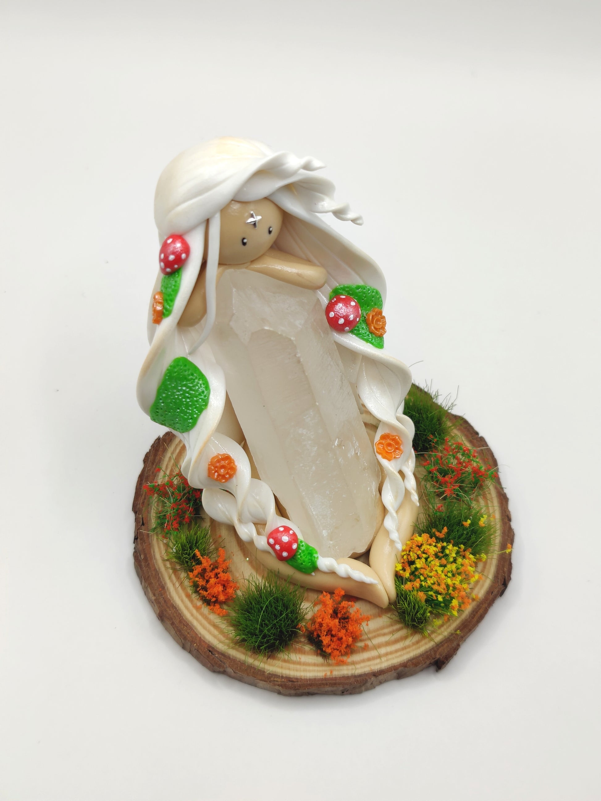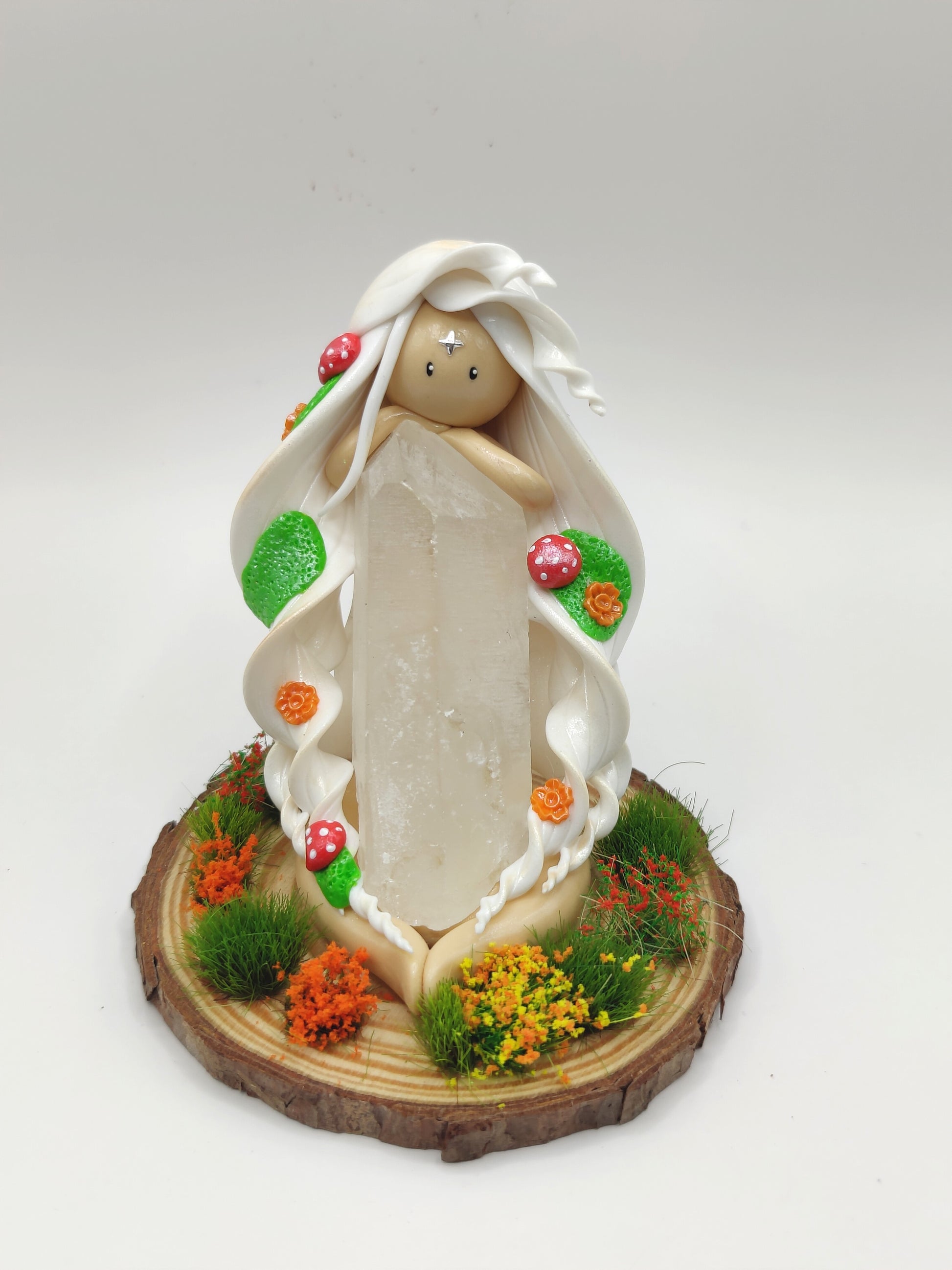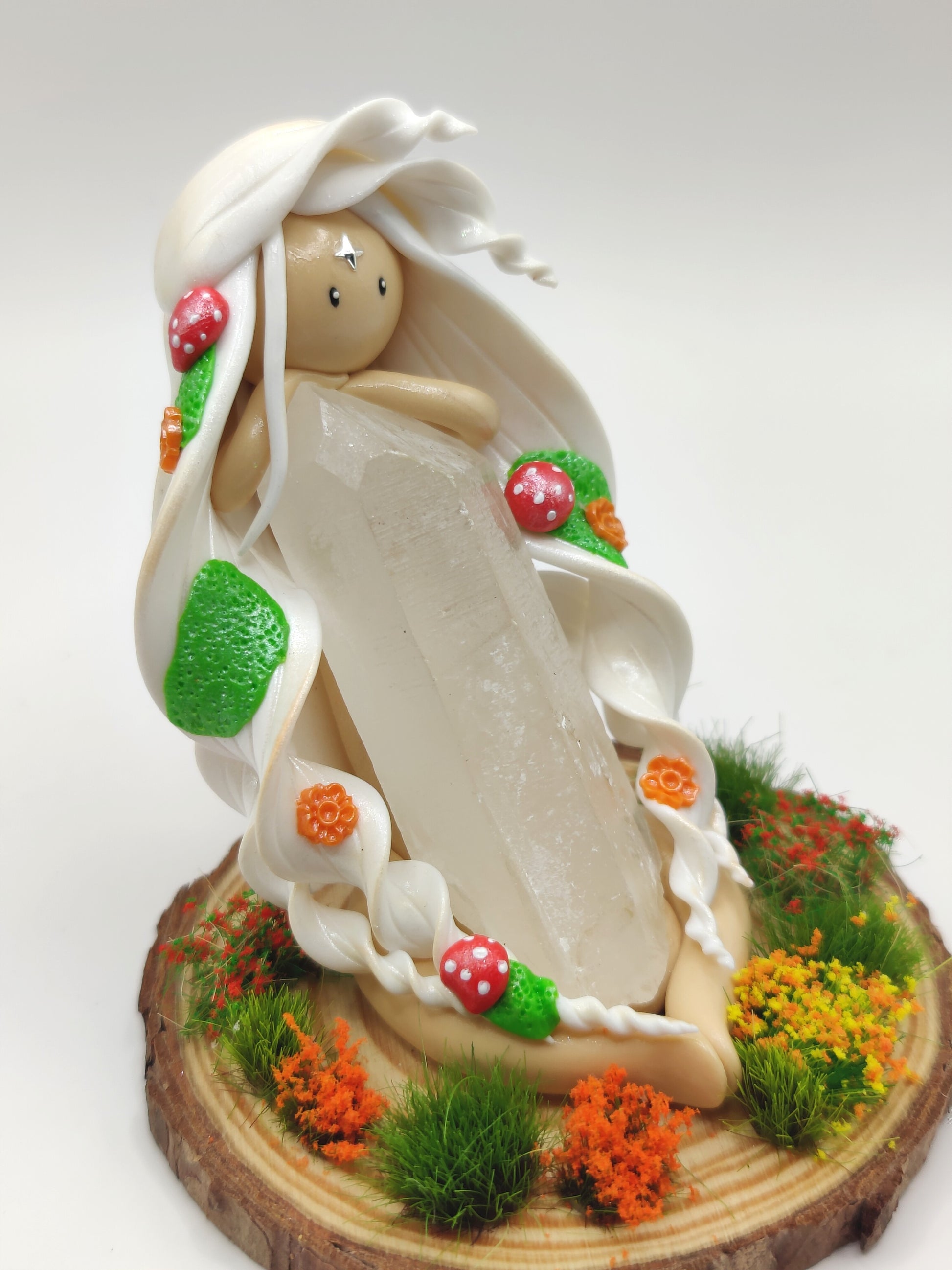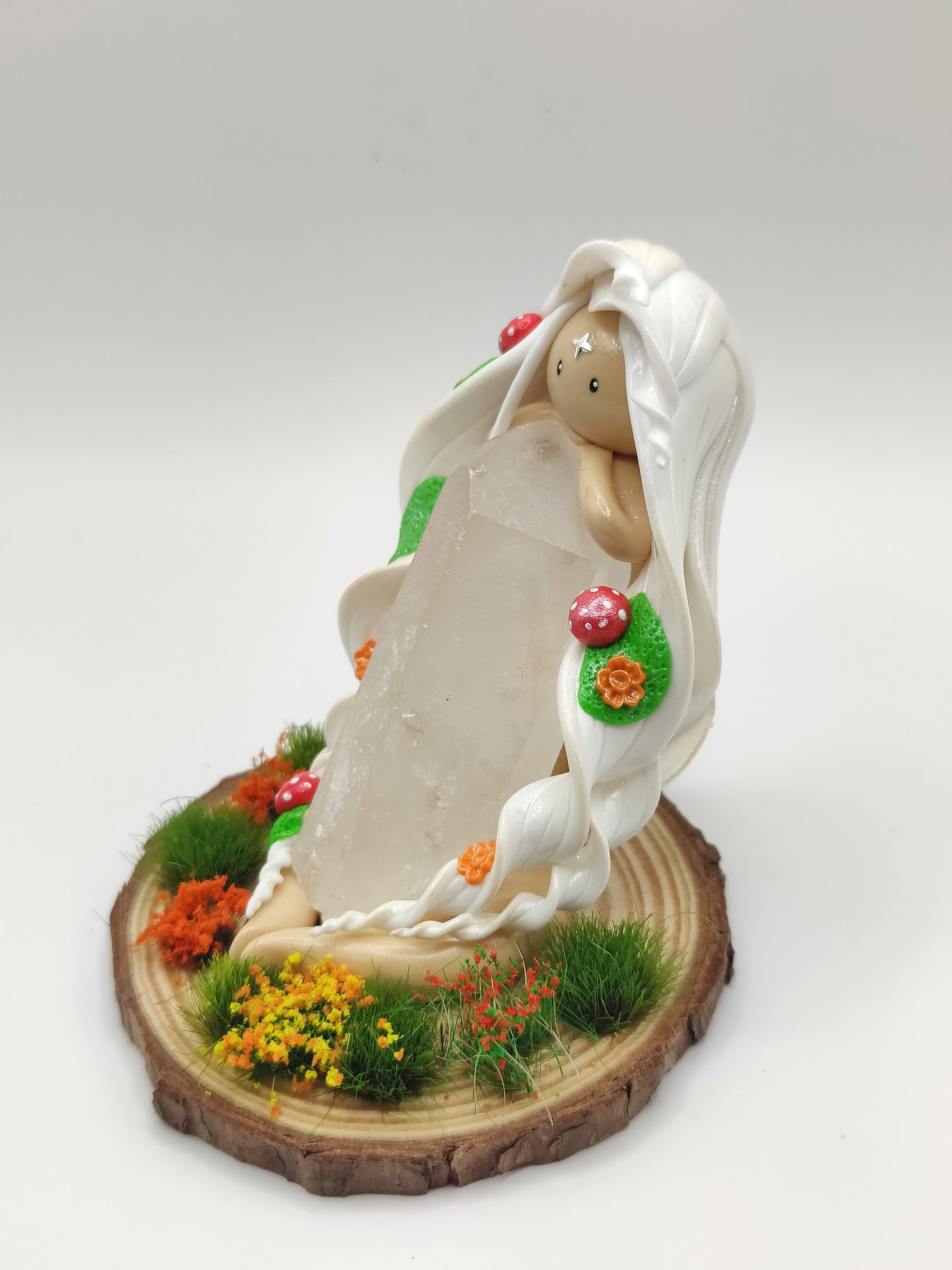 Jolie nymphe des forêts et sa belle pointe de cristal de roche.