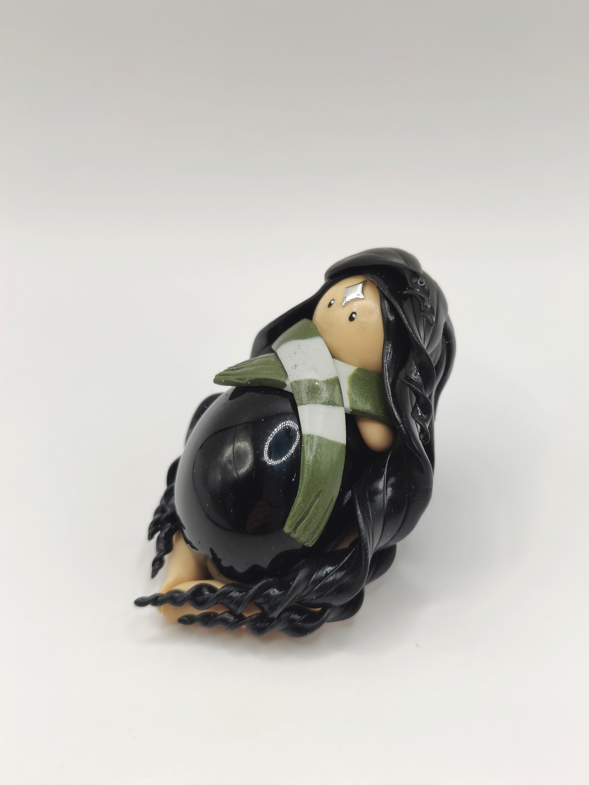 Jolie nymphe de la maison Serpentard et son obsidienne noire. Une Linotte au caractère déterminée et rêveuse.