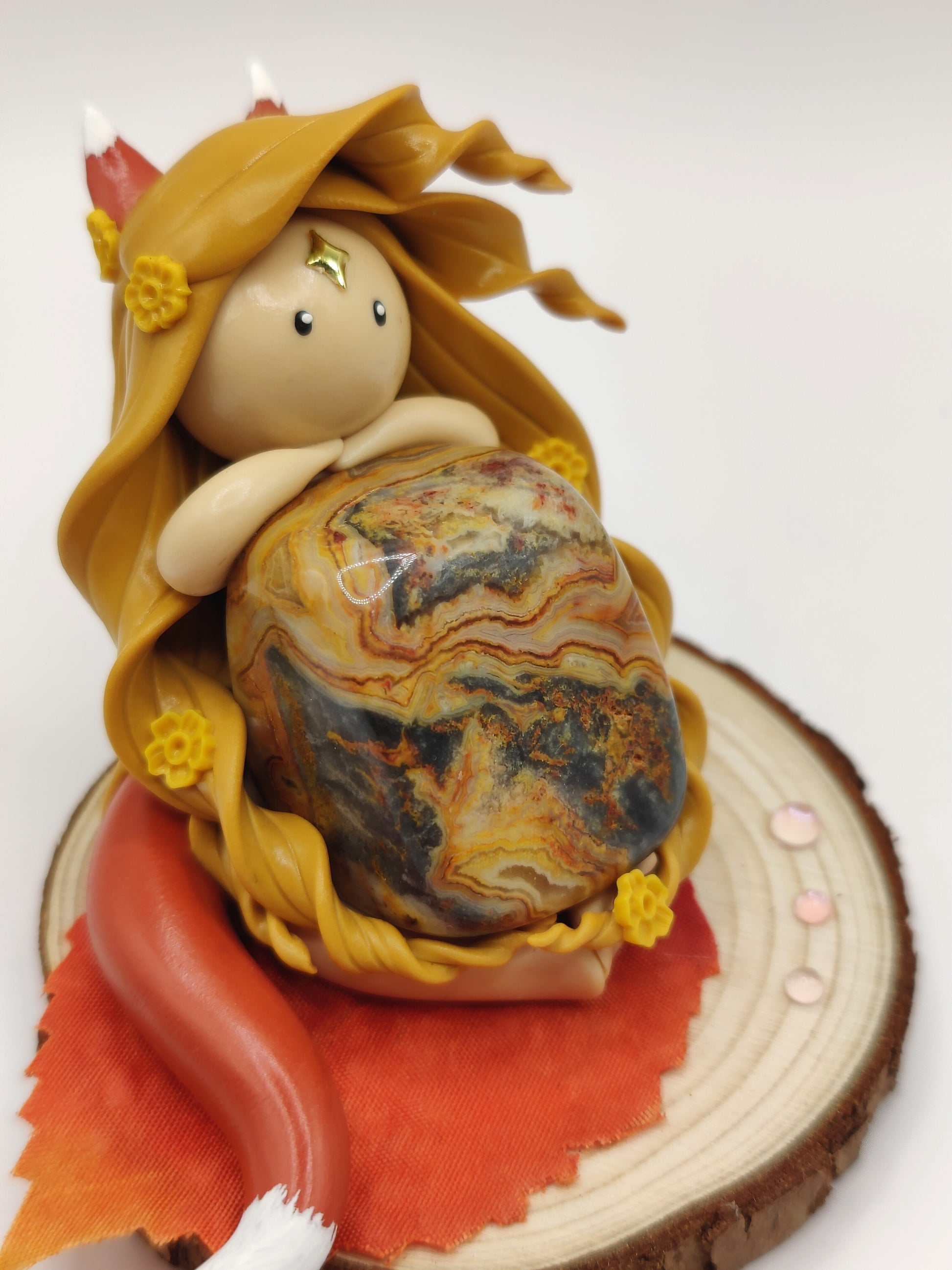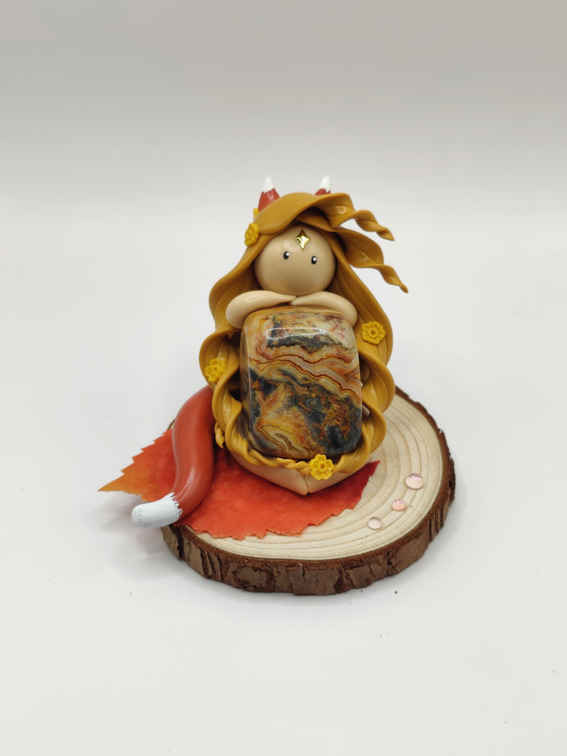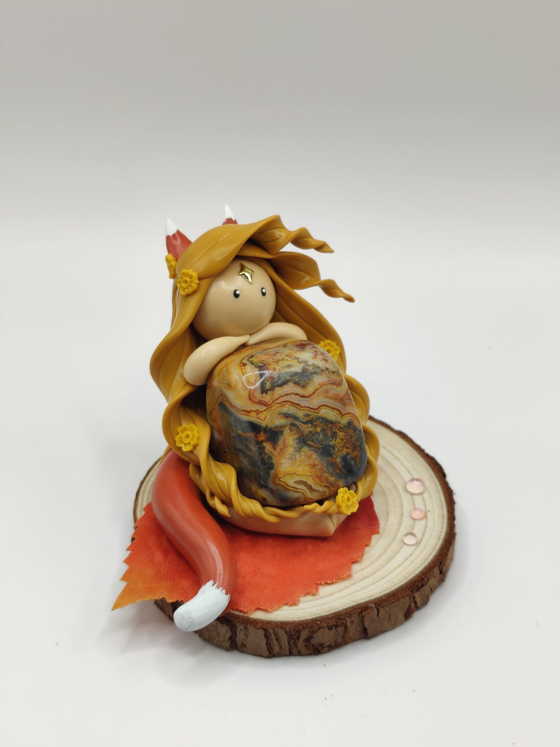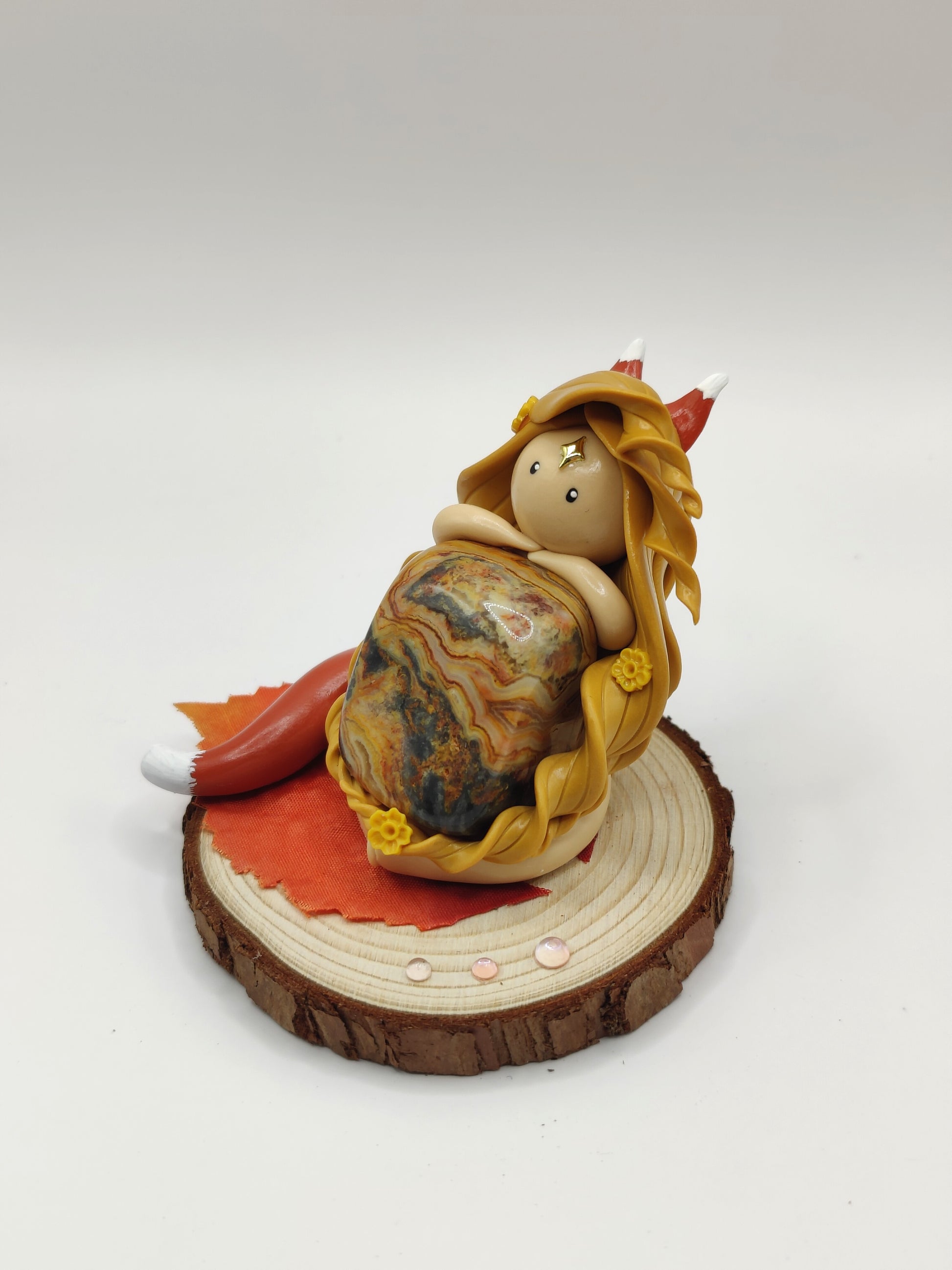 Jolie renarde et sa magnifique agate crazy lace.